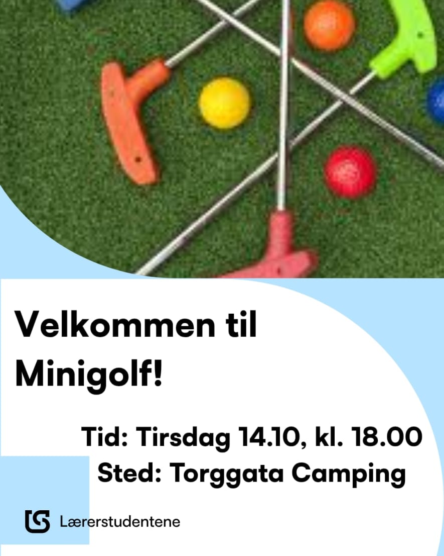 Lærerstudentene i Drammen arrangerer Minigolf for våre medlemmer. Møt opp på Torggata Camping kl. 18.00, så ses vi der! Påmelding på Lærerstudentene USN Drammen sin Facebook-side 😁