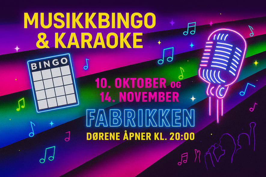 🎶 Musikkbingo & Karaoke på Fabrikken 🎤Bli med på en kveld fylt med musikk, latter og sangglede!